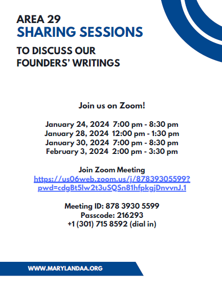 Area 29 Sharing Sessions – To Discuss Our Founder’s Writings