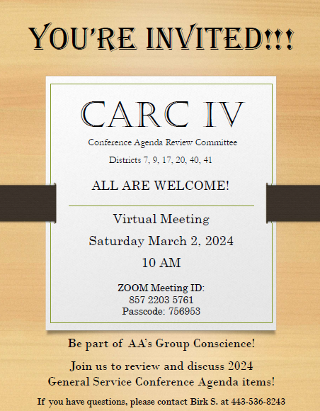 CARC IV Planning Meeting March 2, 2024 @ 10:00 am - 12:00 pm Zoom - details in flyer CARC IV Flyer 2 March